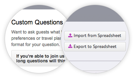 Quickly import and export your guest list. Import parties and +1s from an Excel spreadsheet or .csv.