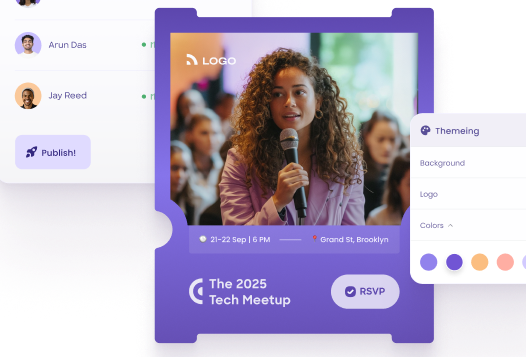 Use RSVPify’s library of bespoke event templates to create your event in minutes. Customize your template and upload your own designs, brand kit, images, video, and more.