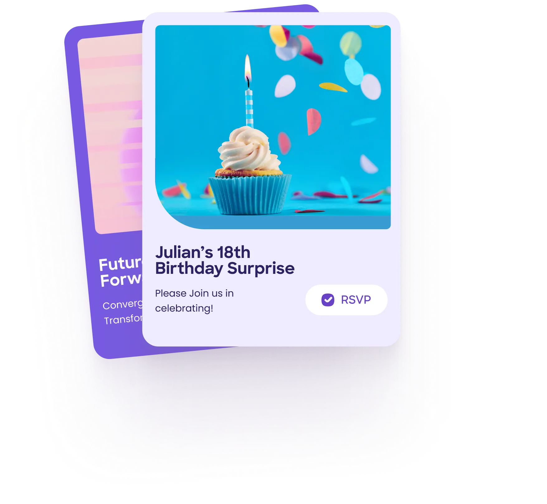 Create personalized birthday party invites and communications for your birthday party. Automatically send email confirmations and event reminders.