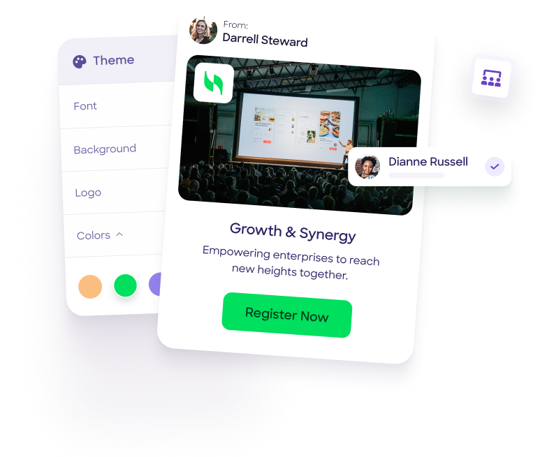 Completely integrate your company's branding with custom event websites, branded invitations, and personalized communications. Keep the spotlight on your brand, not ours, with industry-leading customization that maintains professional consistency across all touchpoints.