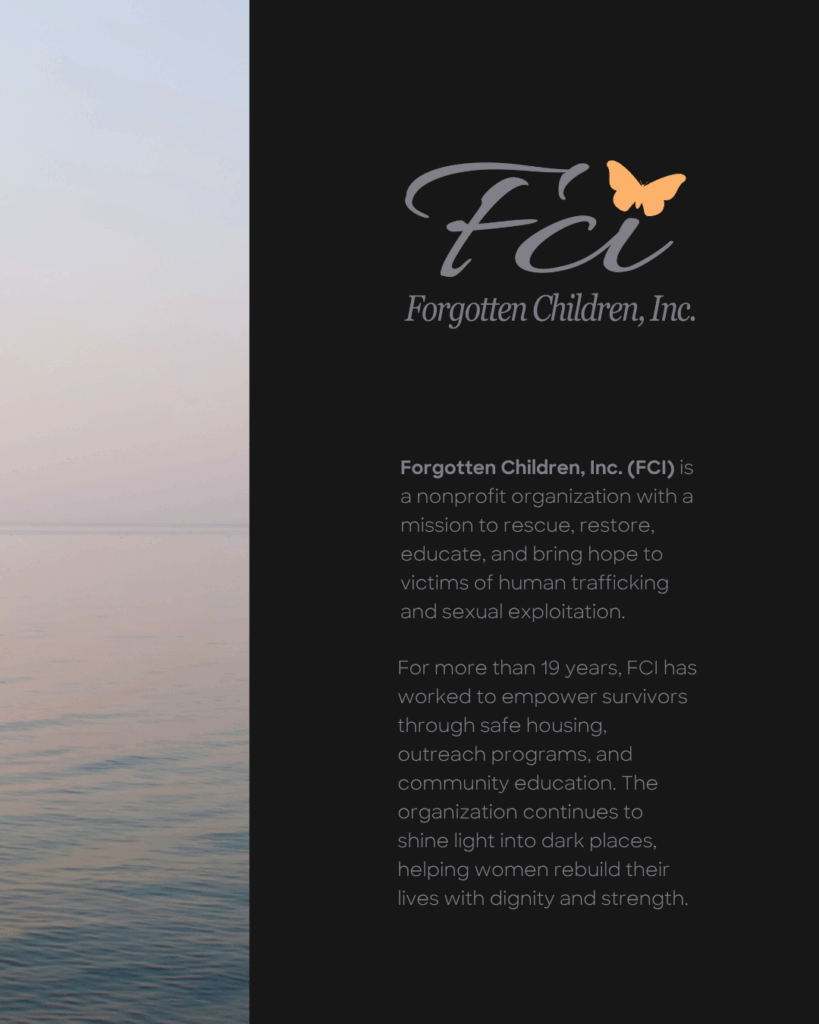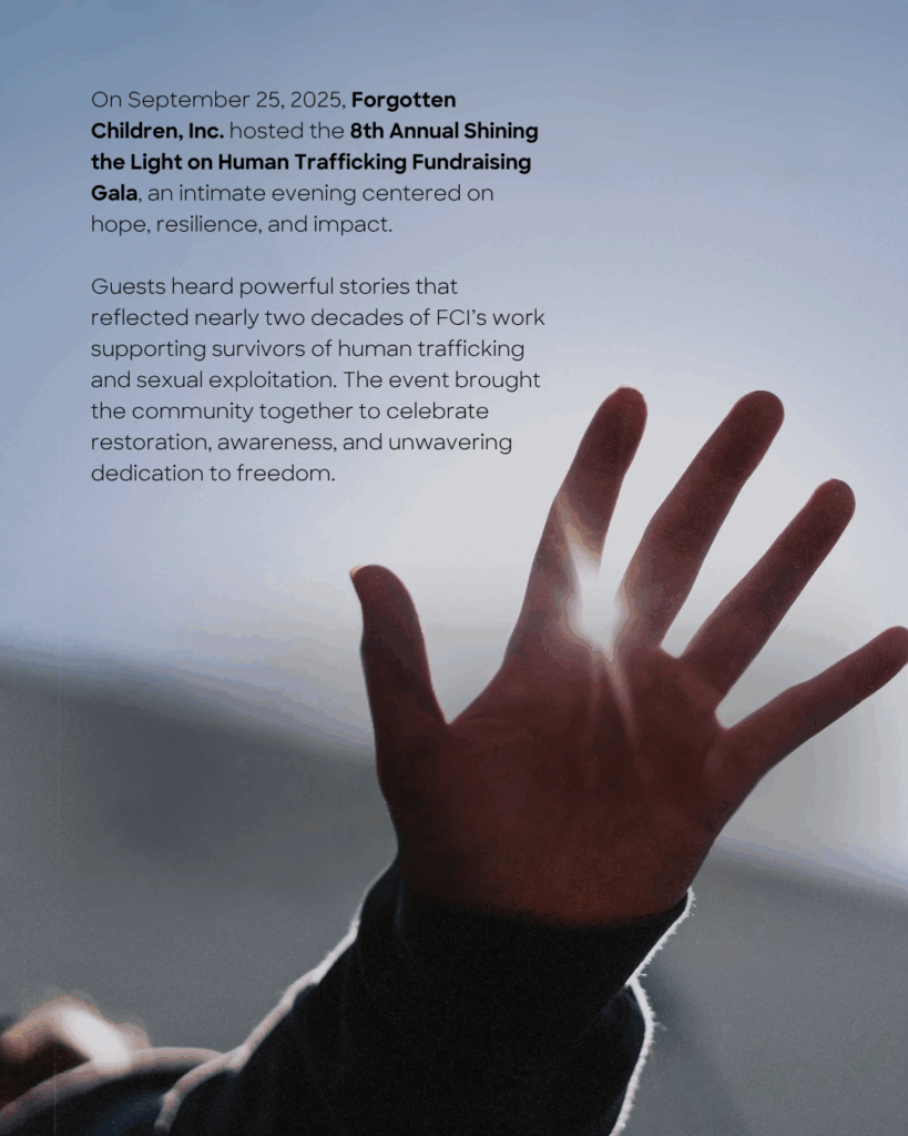 “On Thursday, September 25, 2025, we’ll gather for our Shining the Light on Human Trafficking Fundraising Gala—an intimate evening of hope, resilience, and real stories that reflect the work FCI has been doing for more than 19 years. This is our 8th annual fundraiser.”