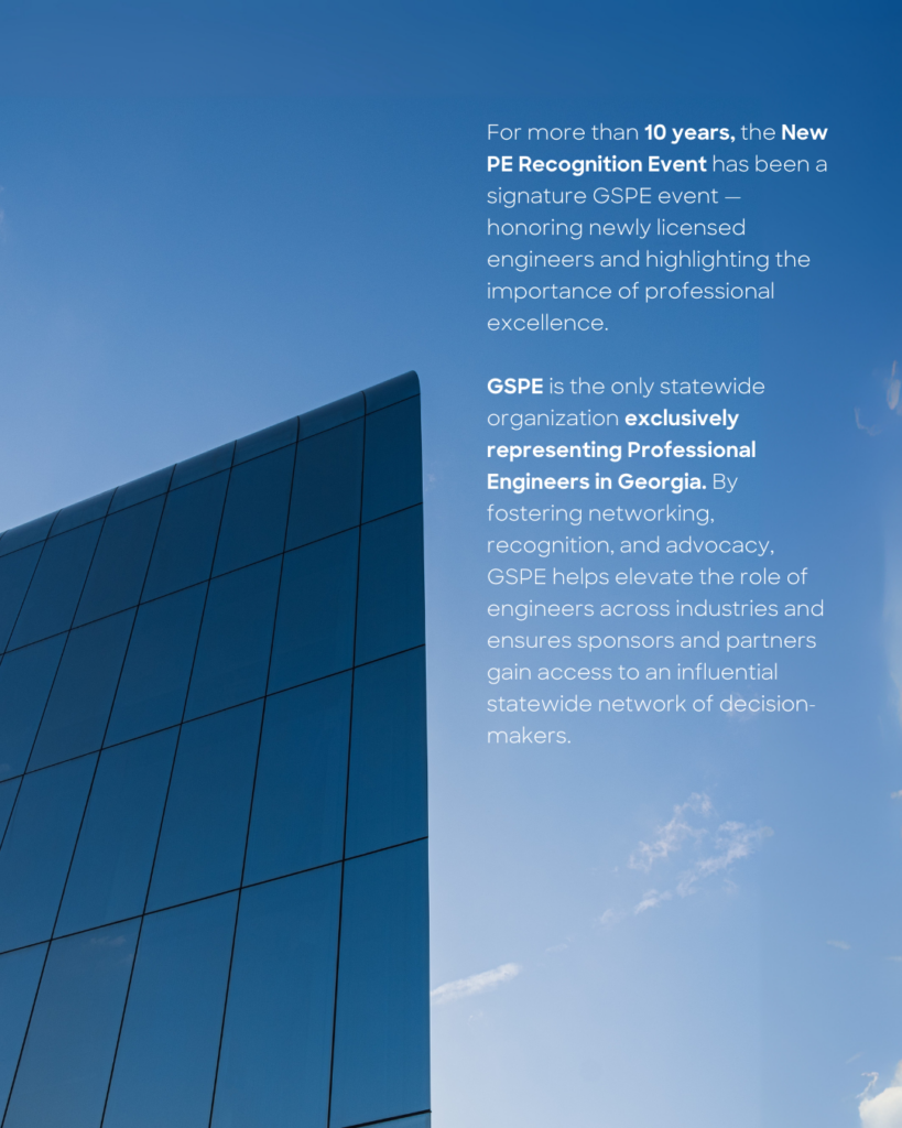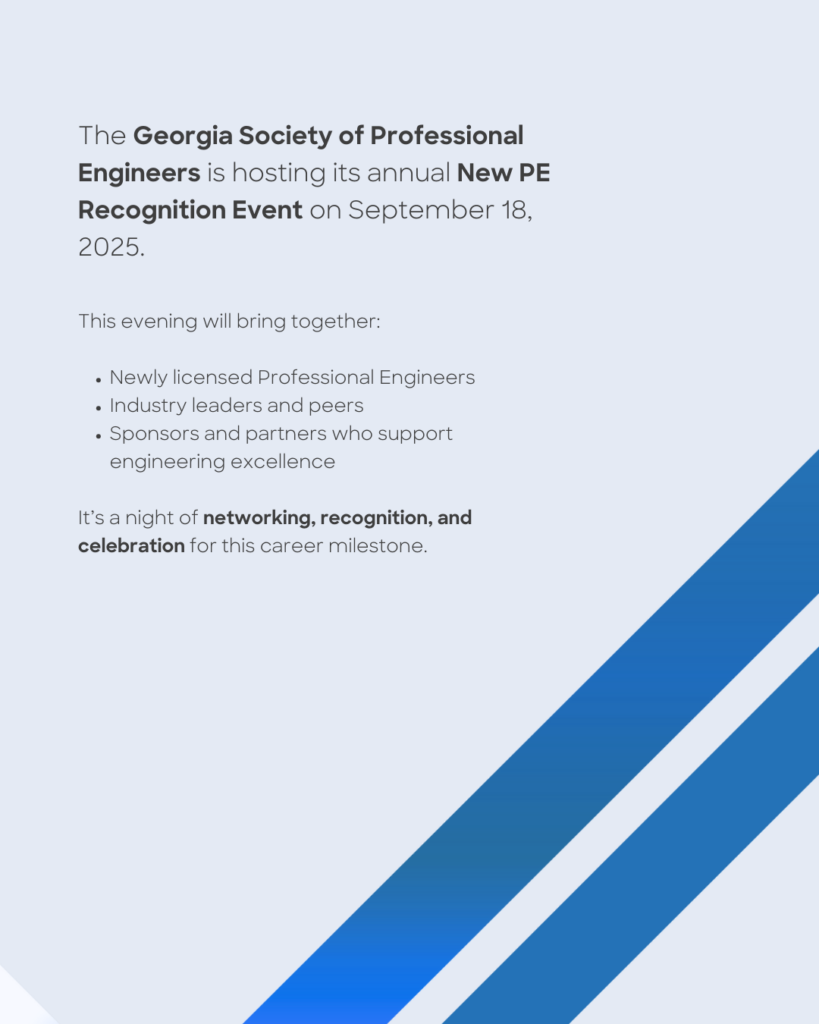 “The Georgia Society of Professional Engineers’ New PE Celebration is an evening of networking and recognition, bringing together new PEs, industry leaders, and peers to celebrate this important career milestone. [We’ve hosted this event for more than a decade].”