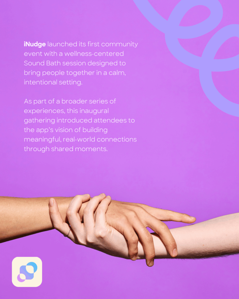 "It’s a promotional and complementary event for our new community enhancing app, iNudge. We’re doing a series of events and the first one we created is wellness-centered which is why we chose a Sound Bath session."