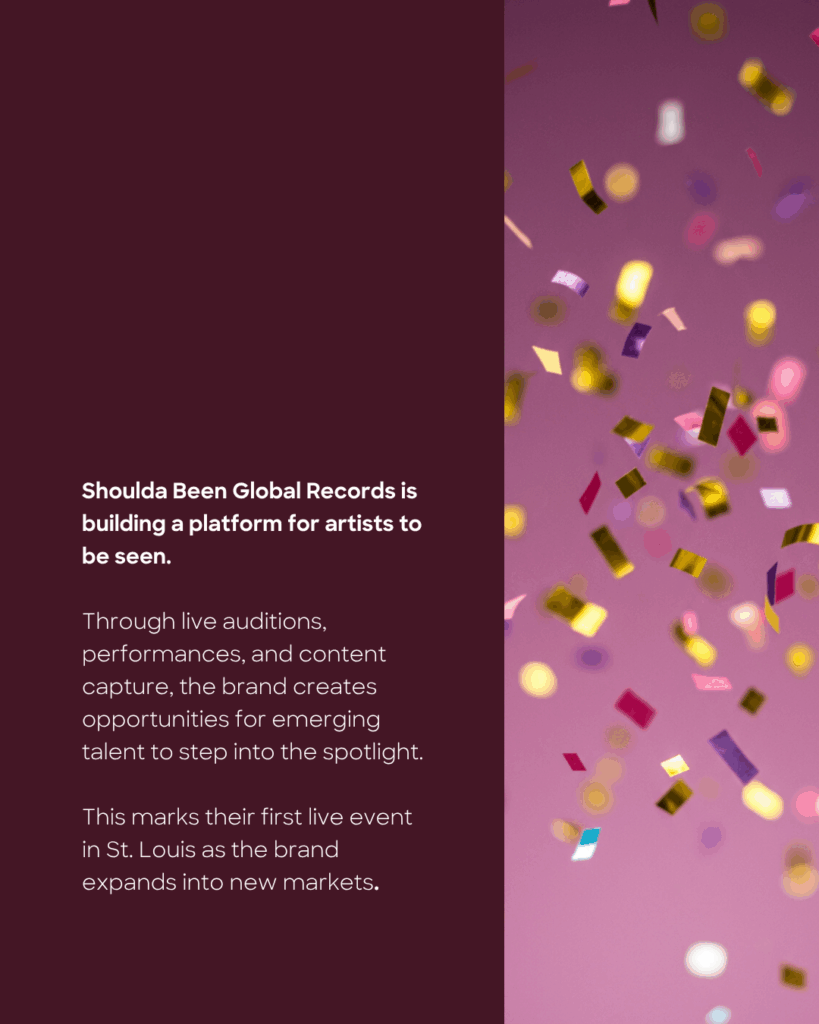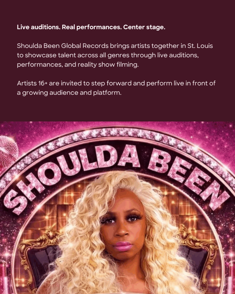 "Welcome to Shoulda Been Records Live Open Auditions & Performances! Live filming of the reality show STL EDITION showcasing magical talent in the Midwest through live content & center stage performances."