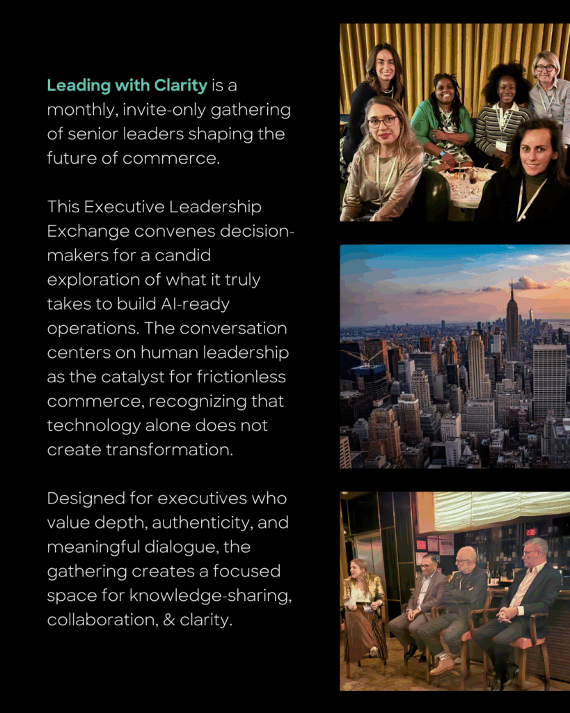 "Leading with Clarity: Building an AI-Ready Organization to Deliver Effortless Commerce.An invite-only gathering of senior leaders shaping the future of commerce."