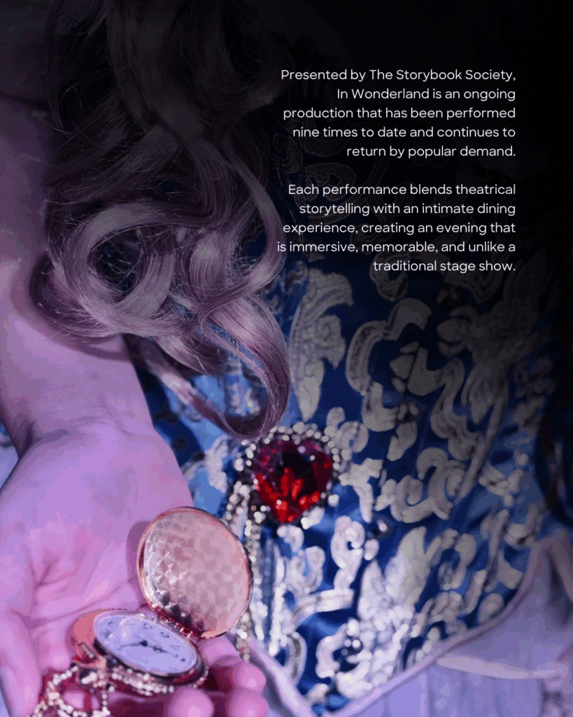 "In Wonderland is an original musical inspired by Lewis Carroll’s Alice’s Adventures in Wonderland. Through music and storytelling, it offers audiences of all ages a playful, heartfelt, and visually rich journey, reimagining the classic tale like never before. We’ve hosted In Wonderland 9 times so far! This ongoing show runs once or twice a month."