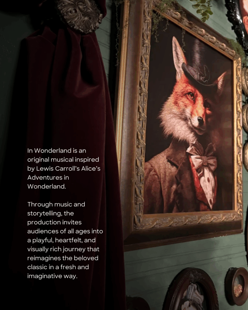 "In Wonderland is an original musical inspired by Lewis Carroll’s Alice’s Adventures in Wonderland. Through music and storytelling, it offers audiences of all ages a playful, heartfelt, and visually rich journey, reimagining the classic tale like never before. We’ve hosted In Wonderland 9 times so far! This ongoing show runs once or twice a month."