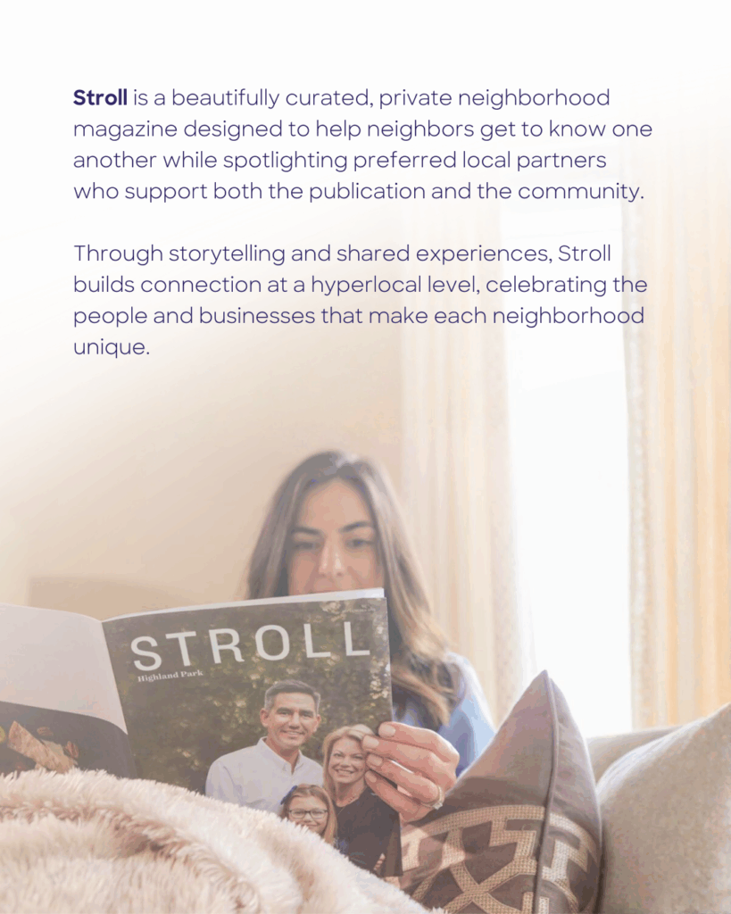 "Stroll is a beautiful, private, neighborhood magazine where neighbors get to know one another and see the preferred partners who support the publication and the community."