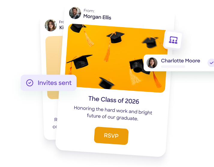 Celebrate your graduate's big achievement with beautiful, customizable graduation party invitations and easy RSVP tracking. Perfect for personal events or school ceremonies.