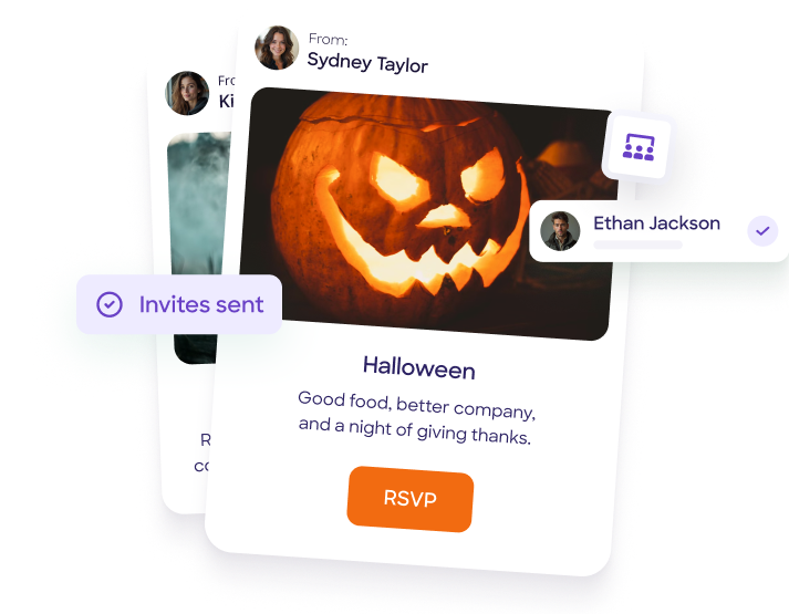 Build excitement for your Halloween party by sending save the dates, personalized invitations, and friendly reminders—all from one platform. You can target specific groups (like those who haven't RSVP'd yet) and keep everyone in the loop with updates about costume contests, party times, or last-minute details.