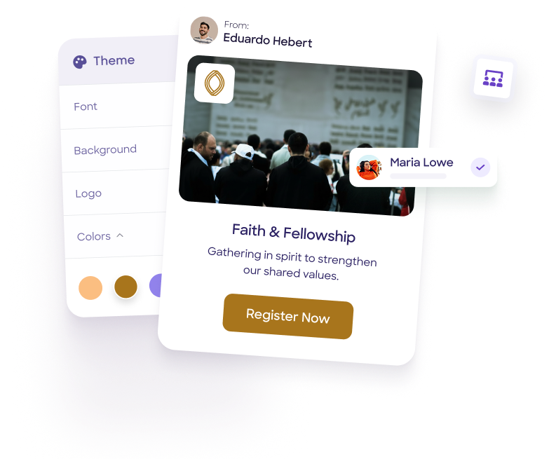 Start with templates designed specifically for religious events and customize every aspect to match your congregation's needs. Tailor registration forms, branding, and event details to create a welcoming experience for your community.