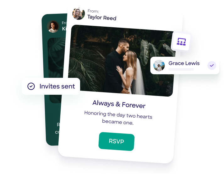 Create stunning online invitations that reflect your unique love story. Upload your own design or customize one of our elegant templates with your photos, colors, and personal touches. Send invitations to your entire guest list with just one click, and let RSVPify handle the rest.